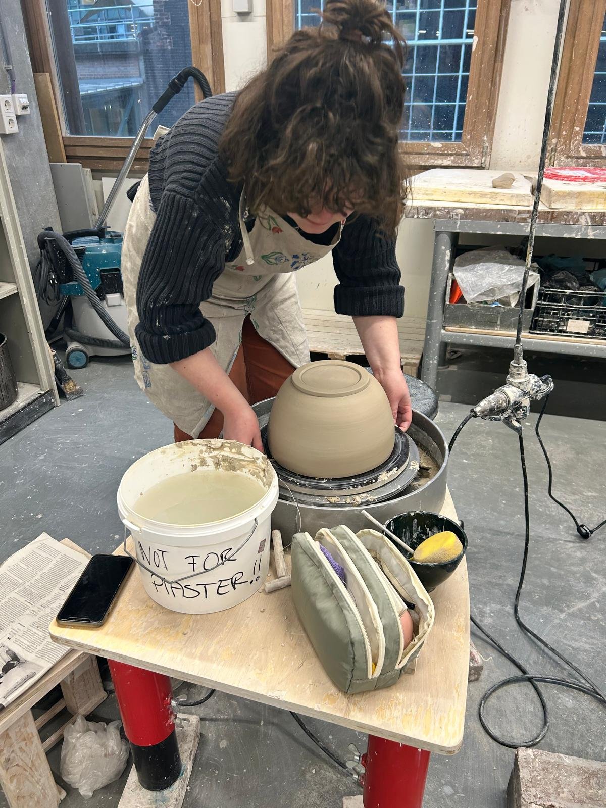 Met mijn keramiek doe ik onderzoek naar oude en nieuwe maak- en stookmethoden. Door verschillende technieken te herinterpreteren en combineren onderzoek ik hoe ik verhalen kan vertellen met mijn werk.